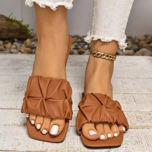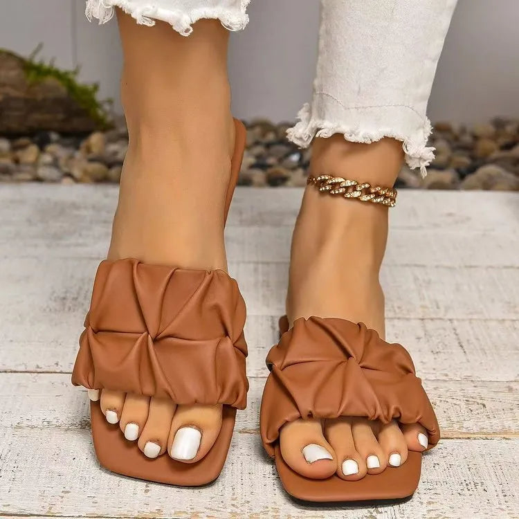 – Sold OutGetting ready for the day will be a cakewalk with these right on-trend slides! The woven strap across the foot...